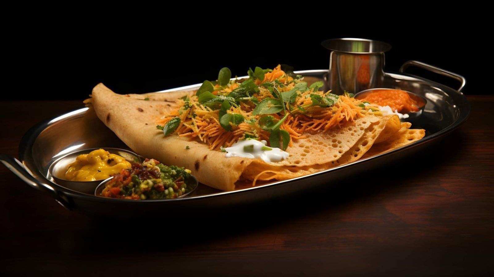 “Savor the rich heritage of South Indian cuisine with our Mysore Masala Dosa – a culinary masterpiece that tantalizes taste buds with every bite. Crispy golden dosa, generously smeared with a luscious layer of spicy and aromatic Mysore chutney, encasing a flavorful filling of perfectly spiced mashed potatoes. This iconic dish offers a symphony of textures and tastes, creating a delightful harmony that transports you to the bustling streets of Mysuru. Elevate your dining experience with the perfect blend of tradition and innovation in every mouthwatering bite of our Mysore Masala Dosa.”